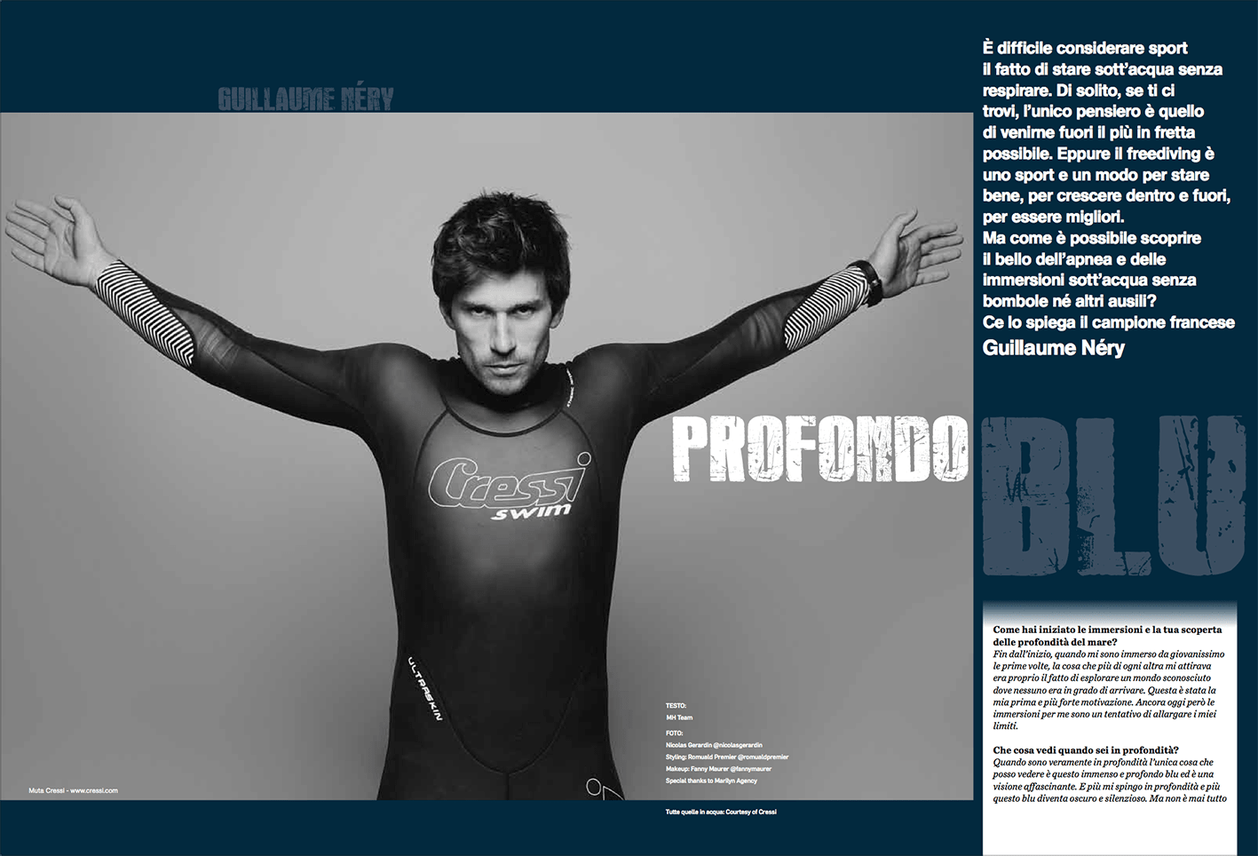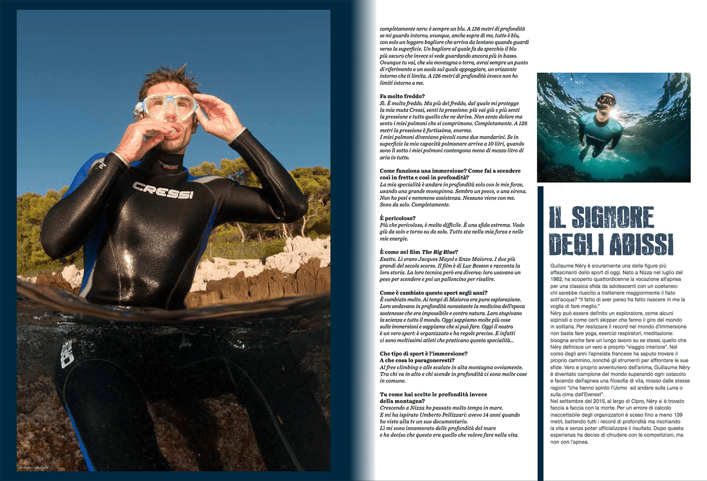 Guillaume Néry, né le 11 juillet 1982 à Nice, est un champion français d’apnée, spécialiste de l’apnée dynamique et du poids constant. Il bat à quatre reprises le record du monde d’apnée en poids constant et est champion du monde par équipes.